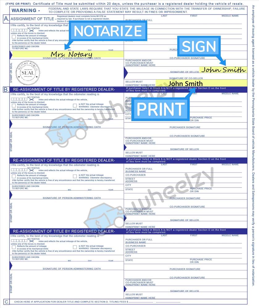 How To Sign Your Car Title In Pennsylvania Including Dmv Title Sample Picture